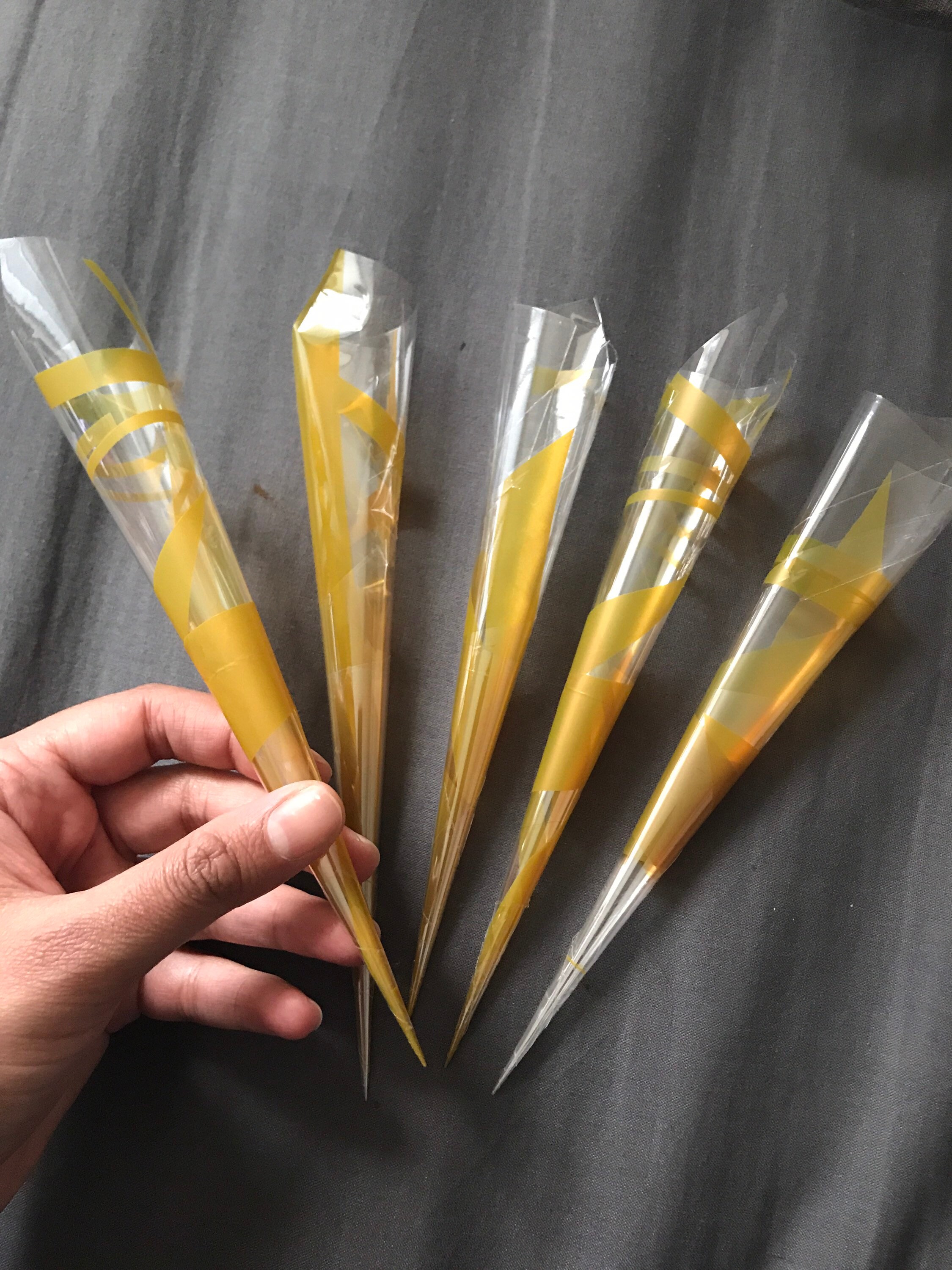 She makes the heena cones on her own. She makes the heena cones on her own. Henna artists may charge anywhere from 10 to 300.
